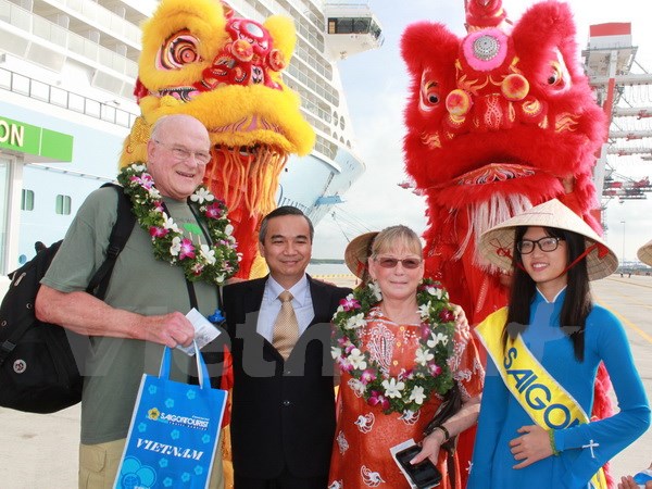 Lãnh đạo Saigontourist đón các vị khách đầu tiên của tàu Quantum of the Seas thăm Việt Nam. (Ảnh: Hà Huy Hiệp/Vietnam+)Bên cạnh việc đưa khách du lịch tàu biển đến Việt Nam, dịp này, thông qua Saigontourist, tập đoàn Royal Caribbean International tiến hành cuộc gặp gỡ với lãnh đạo các tỉnh có cảng biển lớn như Thừa Thiên-Huế, Khánh Hòa và Kiên Giang để tìm hiểu, trao đổi và đẩy mạnh hơn nữa sự hợp tác trên các lĩnh vực tư vấn, nâng cấp, đầu tư cơ sở hạ tầng cảng biển và nâng cao khả năng cung ứng dịch vụ để tiếp nhận và phục vụ các chuyến tàu biển quy mô lớn (từ 4.000-5.000 khách) của tập đoàn này đến Việt Nam trong thời gian tới.
