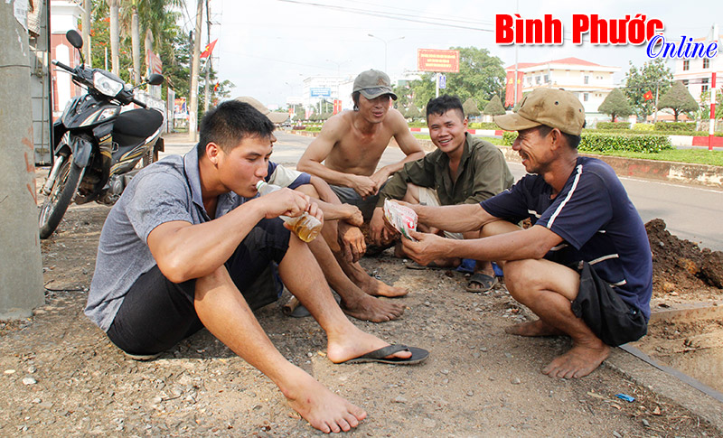 Sau những giờ lao động họ ngồi lại với nhau bên ly nước đá và chiếc điếu cày tự chế, hồn nhiên pha trò, tiếng cười xua đi cái nhọc nhằn, vất vả.