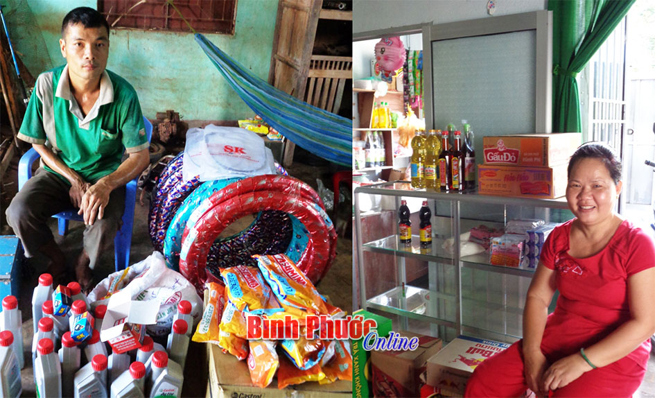Khi có kinh phí, Trung tâm Công tác xã hội đã phối hợp với các xã, phường khảo sát nhu cầu vay vốn của NKT và đã chọn 39 hộ khó khăn có kế hoạch làm kinh tế khả thi để thí điểm hỗ trợ vốn. Ông Kiên cho biết thêm: “Các hộ kinh doanh được hỗ trợ 5 triệu đồng, hộ sản xuất, chăn nuôi thì tùy theo cây, con giống có mức hỗ trợ khác nhau. Hộ nuôi bò được hỗ trợ 12 triệu đồng, nuôi gà và heo 4 triệu đồng, dê 6 triệu đồng... Song song với hỗ trợ vốn, trung tâm còn mở các lớp tập huấn về kỹ thuật chăn nuôi và tác động đến môi trường”. Đến nay, trung tâm đã hỗ trợ 23 hộ NKT về giống vật nuôi và các vật dụng cần thiết để 16 NKT đăng ký kinh doanh mở tiệm bán thức ăn sáng, sửa xe, bán thuốc tây. Chị Nguyễn Thị Ngọc Bích bị tật 2 chân ở thôn Phú Thành, xã Phú Riềng, huyện Phú Riềng hoàn cảnh khó khăn lại phải nuôi hai con nhỏ. Năm 2015, được trung tâm hỗ trợ 5 triệu đồng, chị Bích mở tiệm bán tạp hóa nên cuộc sống nay đã ổn định hơn.