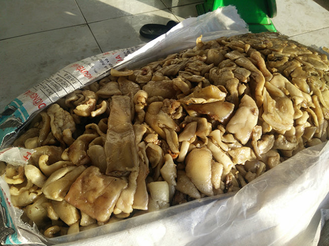 Ngoài vận chuyển heo sữa, tài xế Dũng còn chở lượng lớn tóp mỡ bẩn