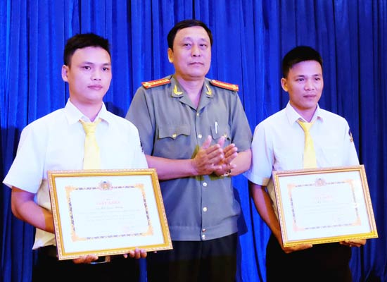 * Sáng cùng ngày, Giám đốc Công an TP Đà Nẵng đã trao giấy khen và tiền thưởng cho 2 tài xế Bùi Quốc Dũng và Hồ Tăng Lũy vì đã có thành tích mưu trí bắt đối tượng lừa đảo.