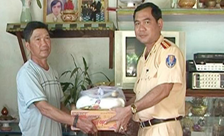 Dịp này đoàn trao tặng 16 phần quà, mỗi phần trị giá 500 ngàn đồng, gồm các nhu yếu phẩm thiết yếu cho 16 gia đình nạn nhân giao thông.