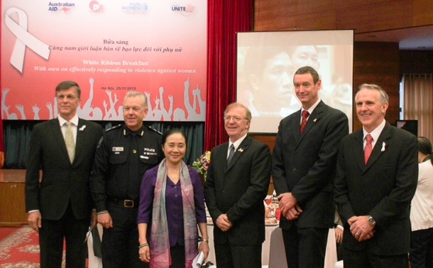Nhân dịp này, Tổng tư lệnh Cảnh sát Nam Úc - Đại sứ của Chiến dịch “Ruy băng trắng” của Úc Grant Stevens đã giới thiệu những kết quả và kinh nghiệm thực tế của Cảnh sát Nam Úc (SAPOL) trong việc ứng phó bạo lực đối với phụ nữ. Chiến dịch “Ruy băng trắng” của Úc là một phong trào nhằm gắn kết nam giới đứng lên chống lại bạo lực gia đình ở tại quốc gia này.