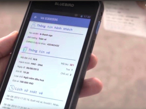 Hành khách kiểm tra soát vé hành trình tàu, số ghế, giờ đi bằng thiết bị di động. (Ảnh: Cắt từ clip của Tổng công ty Đường sắt Việt Nam)“Đại đa số khách hàng đã quen với việc sử dụng phương thức đặt chỗ qua mạng, thanh toán trực tuyến, vì vậy, không còn cảnh tập trung quá đông tại các điểm bán vé, nhất là tại ga Sài Gòn, Hà Nội, việc triển khai bán vé diễn ra trong trật tự, an toàn, tình hình an ninh trật tự trên địa bàn được đảm bảo,” lãnh đạo VNR cho hay.