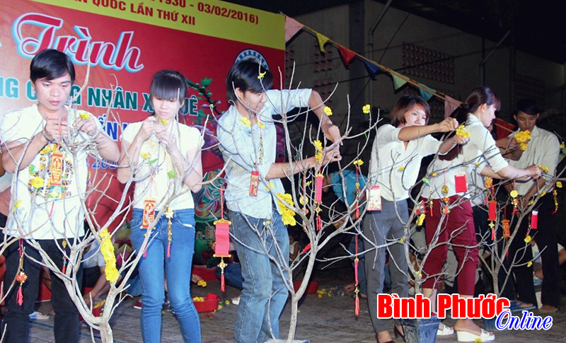 Tại chương trình, thanh niên công nhân đến từ các công ty, doanh nghiệp hai KCN tham gia các phần thi như: Gói bánh chưng, trang trí cành mai, làm thiệp chúc tết và hái lộc đầu năm. Bên cạnh đó, người dân, thanh niên công nhân đến với chương trình còn được thưởng thức các tiết mục văn nghệ đặc sắc và tham gia rút thăm trúng thưởng.