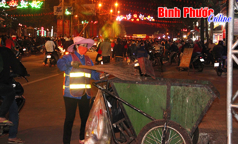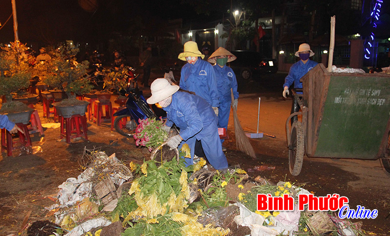 Những ngày cuối tháng Chạp là cuộc tổng vệ sinh của các gia đình, cơ quan, đơn vị, doanh nghiệp, vì vậy lượng rác thải ở khu vực thị xã Đồng Xoài tăng gấp 3 - 4 lần so với ngày thường, nhất là khu vực chợ Đồng Xoài, chợ hoa xuân, Quảng trường tỉnh. Công việc của những công nhân vốn đã khó khăn, cực nhọc thì những ngày tết lại vất vả trăm phần.