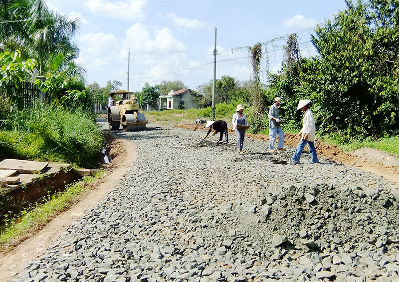 Nhân dân ấp 1, xã Tiến Thành (TX. Đồng Xoài) phối hợp làm đường vào khu dân cư - Ảnh: B.L