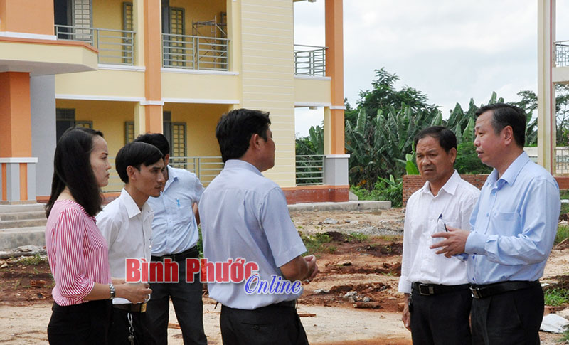 Phó chủ tịch UBND tỉnh Huỳnh Anh Minh cùng đoàn công tác của tỉnh và huyện Hớn Quản kiểm tra thực tế xây dựng Trường THCS Tân Lợi ngày 25-8