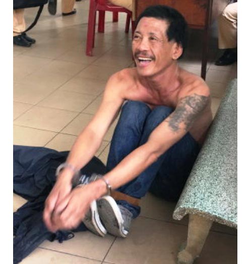Đối tượng Trịnh Hữu Đông bị công an khống chế, đưa về trụ sở công an phường An Lạc, quận Bình Tân trong tình trạng "ngáo đá"