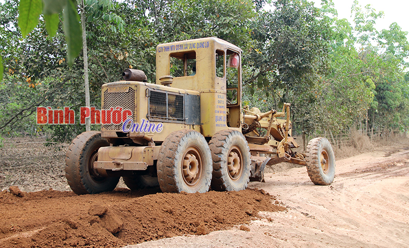 Nhiều xã trong kế hoạch về đích NTM năm 2019 đang tích cực làm đường giao thông, giúp diện mạo nông thôn đổi mới. Trong ảnh: Làm đường NTM ở xã Đồng Nơ, huyện Hớn Quản