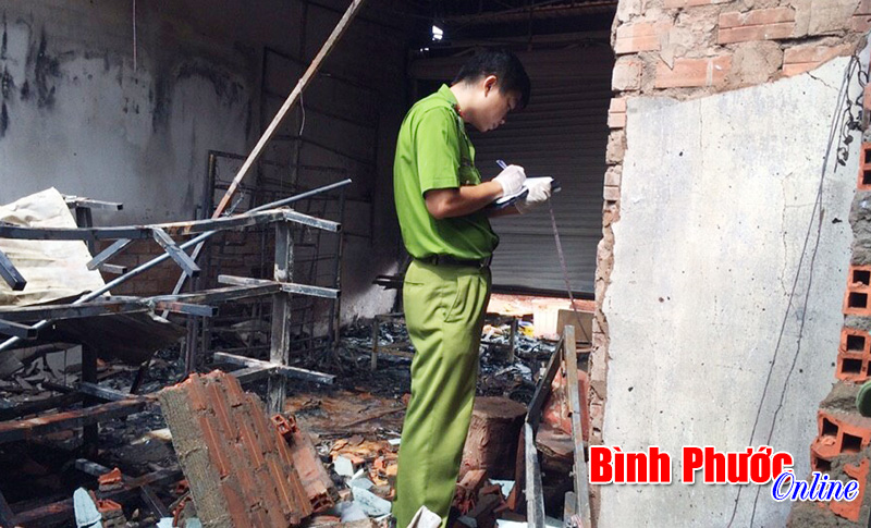 Lực lượng cảnh sát PCCC và CNCH Công an tỉnh đang phối hợp với Công an huyện Bù Gia Mập khám nghiệm hiện trường để điều tra nguyên nhân gây cháy.