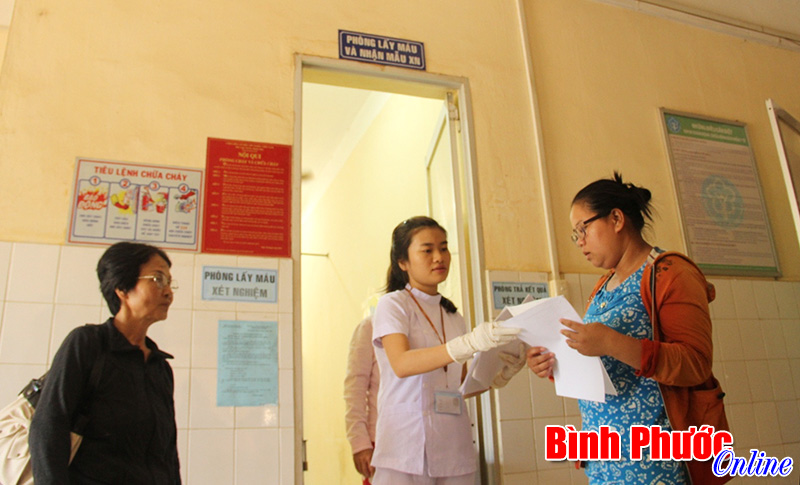 Bệnh viện đa khoa tỉnh đã thay đổi phong cách, thái độ làm việc để thực hiện thông tư 37 theo đúng lộ trình. (Trong ảnh: Trả kết quả xét nghiệm cho bệnh nhân tại khu phòng khám)