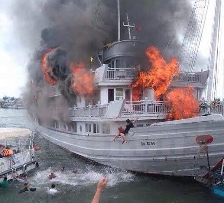 Du khách hốt hoảng nhảy khỏi con tàu cháy