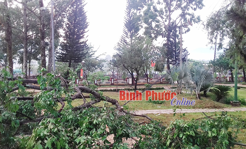 Gió giật mạnh đã làm một số cây sao trên 10 năm tuổi tại công viên Điểu Ong gẫy ngang thân, đổ sập làm đứt dây dẫn đến mất điện. Hệ thống lưới điện từ khu vực bệnh viện đa khoa huyện tới xã Thọ Sơn cũng bị cây gẫy đổ làm đứt nhiều đoạn. Một số pa nô tuyên truyền bầu cử trước cửa UBND huyện và khu vực đối diện chợ Bù Đăng đã bị gió giật đổ ngã, hư hại. Một nhà dân ngay cầu Bù Đăng bị tốc mái tôn vướng vào dây điện. Hiện chưa có thống kê chi tiết về mức độ thiệt hại do giống lốc gây ra chiều qua.