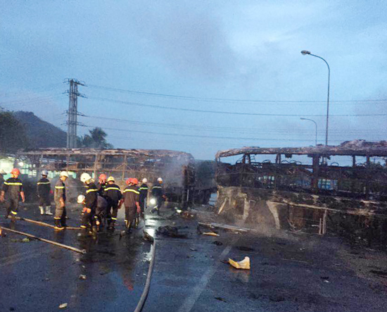 Thông tin ban đầu, vụ tai nạn xảy ra vào khoảng khoảng 4 giờ 30 giữa 2 xe khách giường nằm chạy ngược chiều và một xe tải. Vụ tai nạn đã làm 2 xe khách cháy rụi, 12 người đi trên 2 xe thiệt mạng và 35 hành khách bị thương phải chuyển viện cấp cứu.