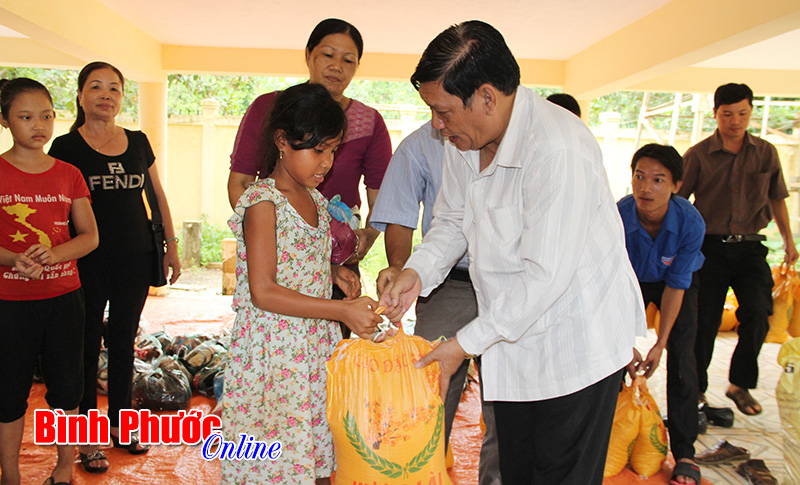 Ông Nguyễn Tuấn, Giám đốc Sở Văn hóa - Thể thao và Du lịch tặng quà cho đồng bào dân tộc thiểu số nghèo thôn Bù Ka 1