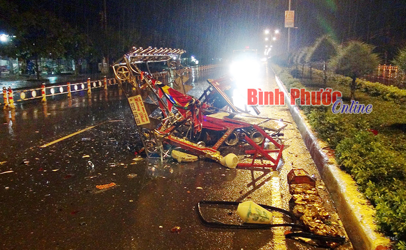 Lực lượng cảnh sát giao thông Công an thị xã Đồng Xoài đã có mặt tại hiện trường, điều tiết giao thông, điều tra, làm rõ nguyên nhân vụ tai nạn.