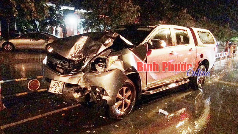 Khi đi đến đoạn ấp 2, xã Tiến Thành, do chạy với tốc độ cao, lại gặp mưa lớn nên tài xế không làm chủ được tốc độ, tông thẳng vào đuôi xe ô tô tang mang biển kiểm soát 69B-1053, do tài xế Phùng Hữu Trung (43 tuổi, ngụ xã Tiến Hưng, thị xã Đồng Xoài) điều khiển lưu thông cùng chiều phía trước.