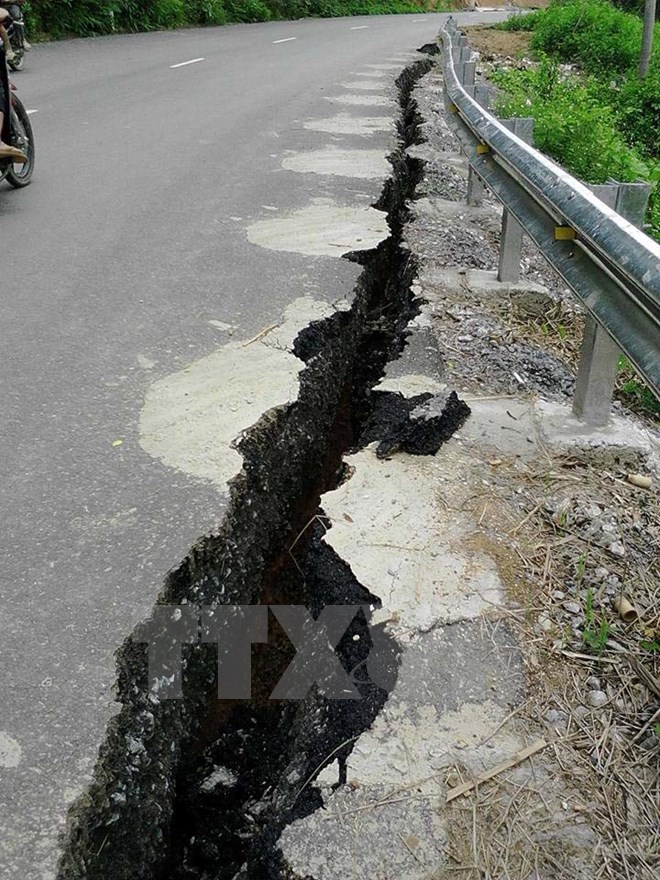 Vết nứt có độ dài gần 200m, độ sâu từ 1,8m đến 2m, khiến 3 nhà dân gần đó bị nứt nghiêm trọng, buộc phải di dời khẩn cấp.