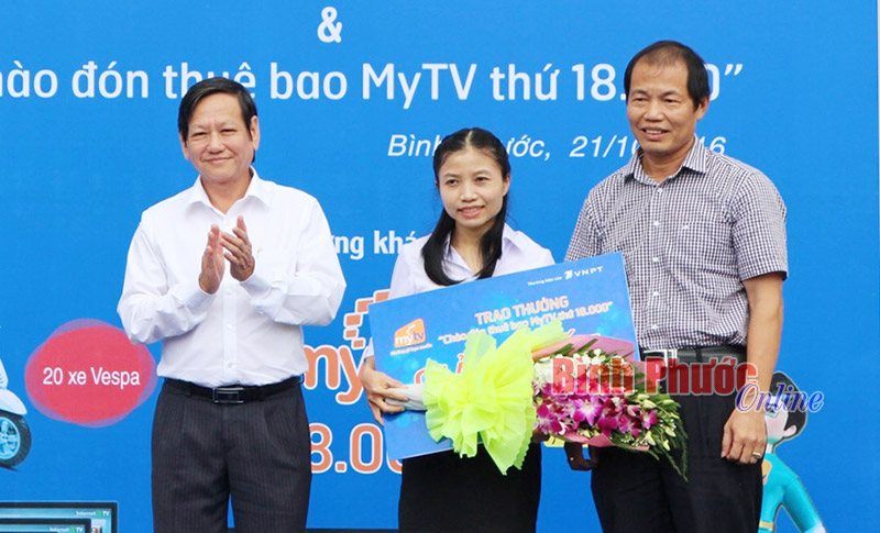 Chương trình “Chào đón thuê bao MyTV thứ 18.000”, VNPT Bình Phước đã trao 5 giải cho 5 khách hàng may mắn trúng thưởng. Giải nhất là chiếc Tivi Sony LED 40 inch thuộc về chị Nguyễn Thị Thu Ba, phường Bình, thị xã Đồng Xoài. 4 giải nhì, mỗi giải gồm 1 chiếc Tivi Sony LED 32inch.