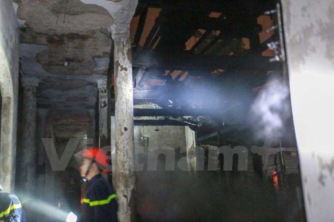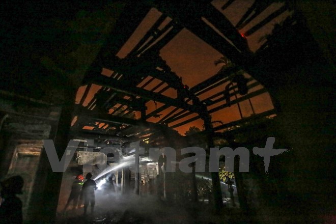 Lực lượng cứu hoả đã kịp thời khống chế dập tắt ngọn lửa. (Ảnh: Minh Sơn/Vietnam+)