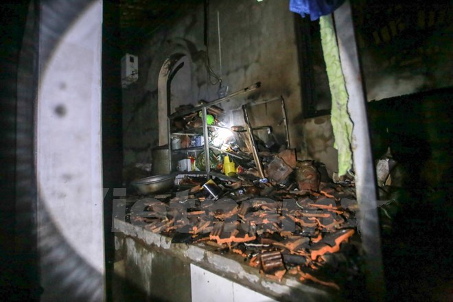 Toàn bộ gian thờ tổ bị thiêu cháy hoàn toàn. (Ảnh: Minh Sơn/Vietnam+)