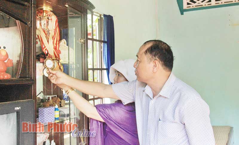 Nhà hảo tâm đến tặng quà cho gia đình Hoa đều cảm phục khi nhìn những tấm huy chương mà Phúc đã giành được qua các kỳ hội thao