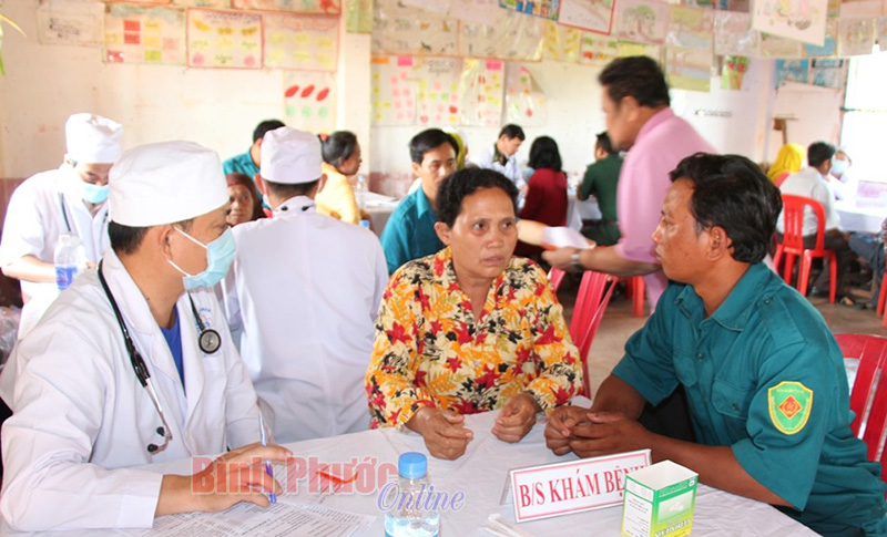 Để thuận lợi cho chuyến thăm, khám và phát thuốc, Bộ chỉ huy Bộ đội biên phòng tỉnh Bình Phước đã cử cán bộ phối hợp với Đồn cửa khẩu quốc tế Hoa Lư tăng cường lực lượng phiên dịch viên đi theo đoàn để hướng dẫn người dân cách làm thủ tục khám bệnh. Thiếu tá Lê Văn Sơn, phiên dịch viên Đồn biên phòng cửa khẩu quốc tế Hoa Lư cho biết: Đa số người dân không biết nói tiếng Việt. Vì vậy, những cán bộ, chiến sĩ biết tiếng Khơ me đã hướng dẫn để người dân hiểu và nhanh chóng được khám bệnh, phát thuốc.