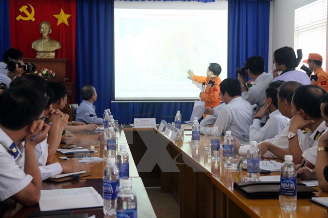 Đại diện Trung tâm Phối hợp tìm kiếm cứu nạn Hàng hải Việt Nam trình bày phương án cứu nạn tại cuộc họp.