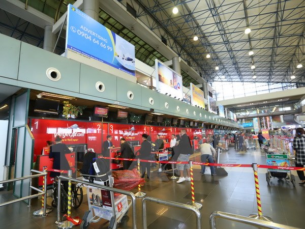 Quầy làm thủ tục của VietjetAir tại sảnh A nội địa, sân bay quốc tế Nội Bài, Hà Nội
