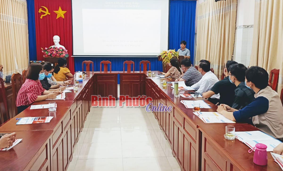 Cán bộ, y, bác sĩ Ban bảo vệ chăm sóc sức khỏe cán bộ tỉnh tham gia buổi tập huấnQua tập huấn, các y, bác sĩ của Ban Bảo vệ chăm sóc sức khỏe cán bộ tỉnh và một số bác sĩ thành viên hội đồng chuyên môn của ban đã được nghe GS.TS.BS Nguyễn Đức Công, Chủ tịch Hội đồng chuyên môn bảo vệ sức khỏe cán bộ miền Nam cập nhật thêm kiến thức về: Cách tiếp cận, chẩn đoán theo dõi điều trị; giảm biến cố tim mạch trong đó đặc biệt là đột quỵ tim, đột quỵ não; điều trị rối loạn lipid máu trên các bệnh nhân có các bệnh lý nguy cơ cao như tiểu đường, xơ vữa động mạch, bệnh thận mạn...