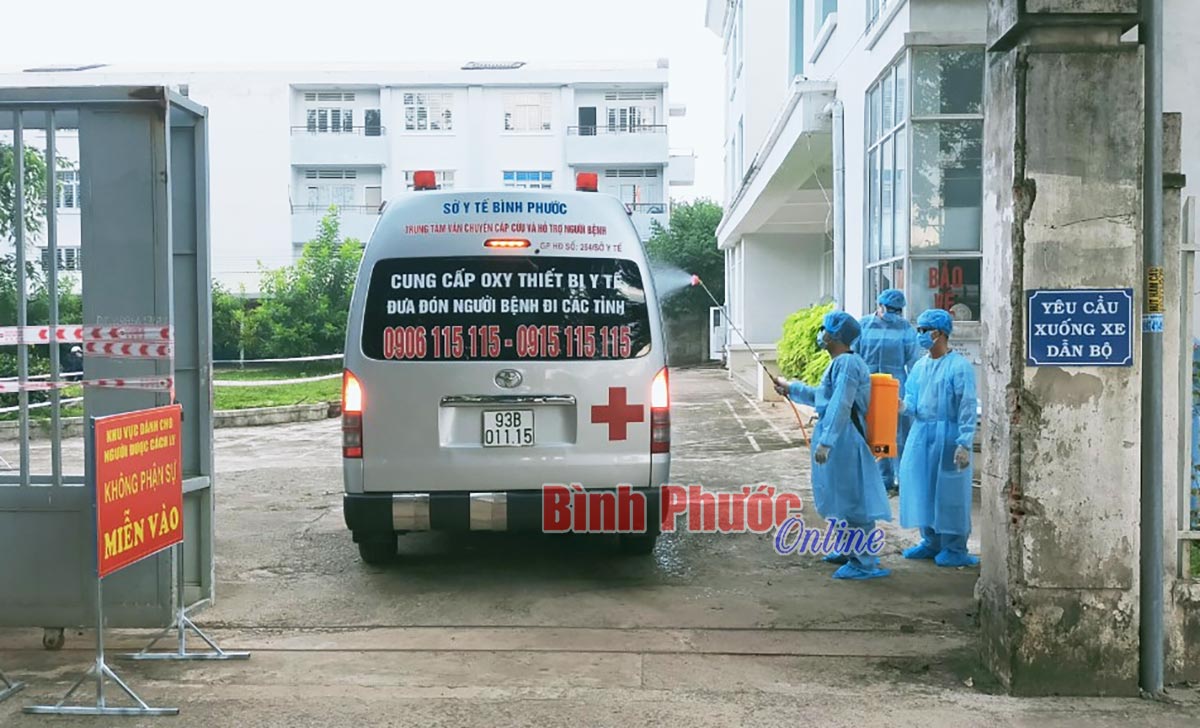 Nhân viên y tế thành phố phun xịt khử khuẩn xe chở các chuyên gia Đài Loan về khu cách ly tập trung Trung tâm dạy nghề và hỗ trợ nông dân tỉnhTrước đó, Ban chỉ đạo phòng chống Covid-19 tỉnh và thành phố Đồng Xoài đã thống nhất trưng dụng Trung tâm đào tạo nghề và hỗ trợ nông dân tỉnh, ấp 2, xã Tân Thành, thành phố Đồng Xoài để làm khu cách ly y tế tập trung của thành phố Đồng Xoài, đáp ứng đầy đủ theo quy định của Bộ Y tế và Viện Pasteur thành phố Hồ Chí Minh.