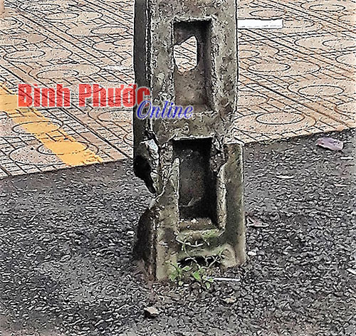 BP - Trước cổng Trường cao đẳng sư phạm Bình Phước (Đồng Xoài) thường xuyên có nhiều người, xe ra vào. Thế nhưng tại đây đang tồn tại một cột điện gãy chân. Phần bê tông dưới chân cột đã bị gãy rời. Nếu có gió mạnh thì cột điện này có thể đổ, gây nguy hiểm cho người qua lại bất cứ lúc nào. Rất mong ngành chức năng sớm khắc phục.