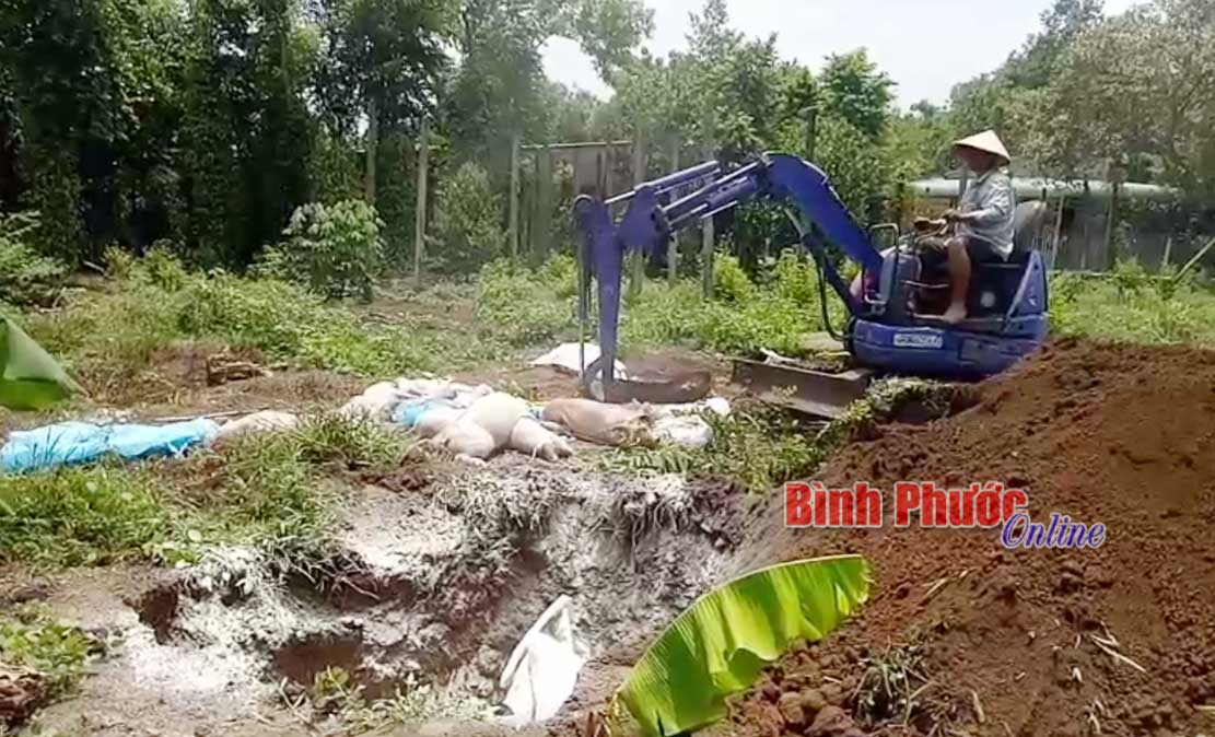 Tính đến ngày 23-6, toàn tỉnh Bình Phước đã có trên 2.200 con heo bị tiêu hủy với tổng trọng lượng hơn 100 tấn. Hiện công tác phòng chống dịch vẫn đang được cơ quan chức năng triển khai chặt chẽ, nghiêm túc, khoanh vùng đệm cô lập ổ dịch…