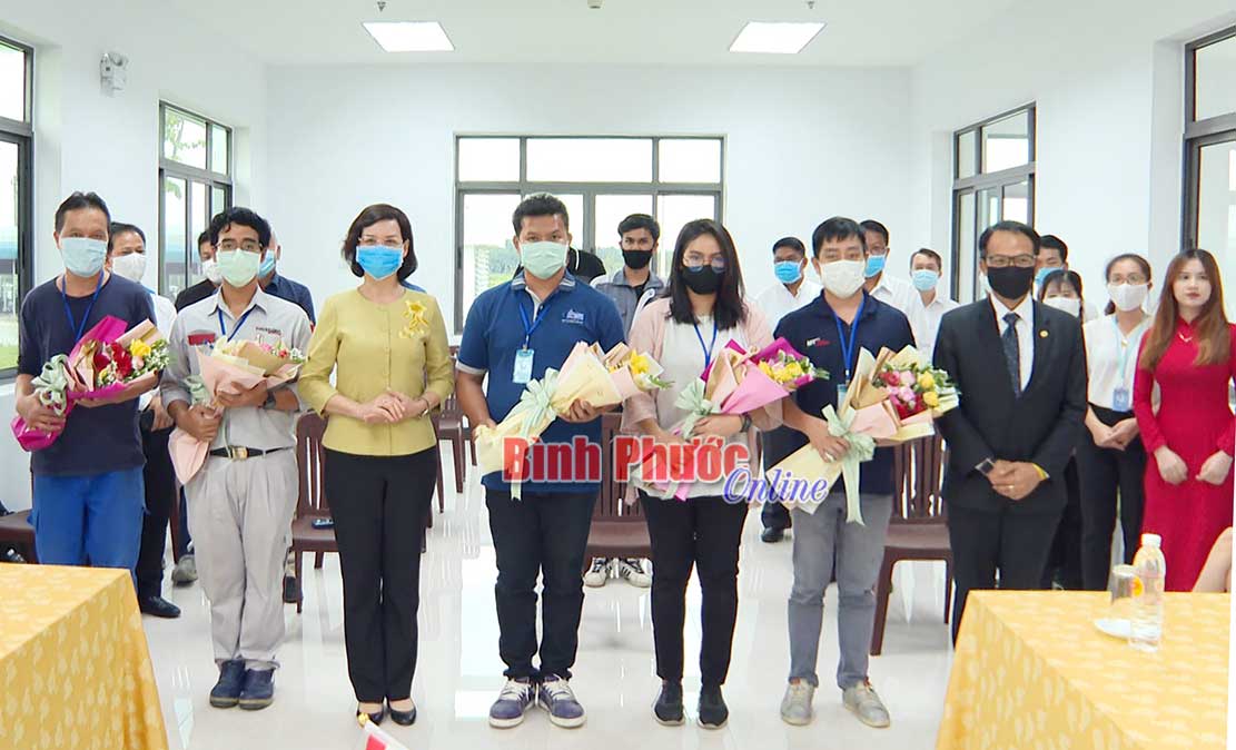 Chiều nay 12-7, bà Trần Tuyết Minh, Ủy viên Ban Thường vụ Tỉnh ủy, Phó chủ tịch UBND tỉnh cùng lãnh đạo Sở Y tế, Ban quản lý Khu kinh tế, huyện Chơn Thành đã đến thăm, động viên và chúc mừng các chuyên gia.