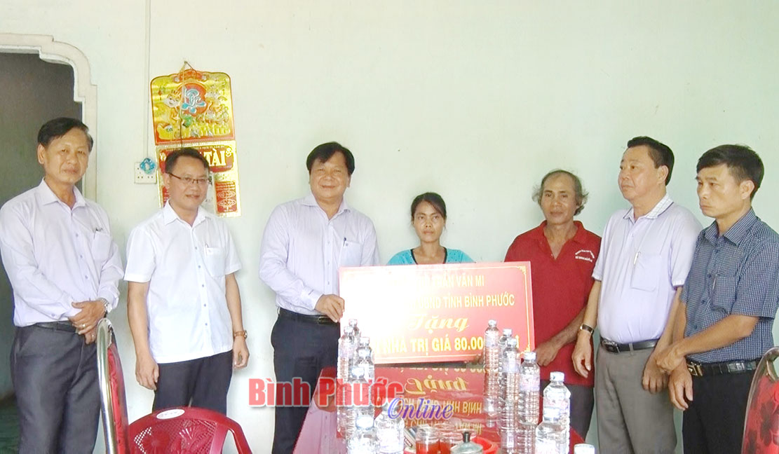 Phó chủ tịch UBND tỉnh Trần Văn Mi trao biểu trưng số tiền 80 triệu đồng cho chị HồngSố tiền 80 triệu đồng được trao hỗ trợ xây nhà ở cho chị Điểu Thị Hồng, sinh năm 1988, khu phố Thanh Xuân, thị trấn Thanh Bình là hộ nghèo, khó khăn về nhà ở.