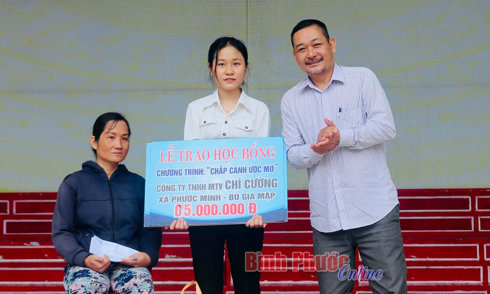 Ông Nguyễn Văn Thành, Phó giám đốc VNPT Bình Phước, đại diện nhà tài trợ chính trao tặng số tiền 15 triệu đồng