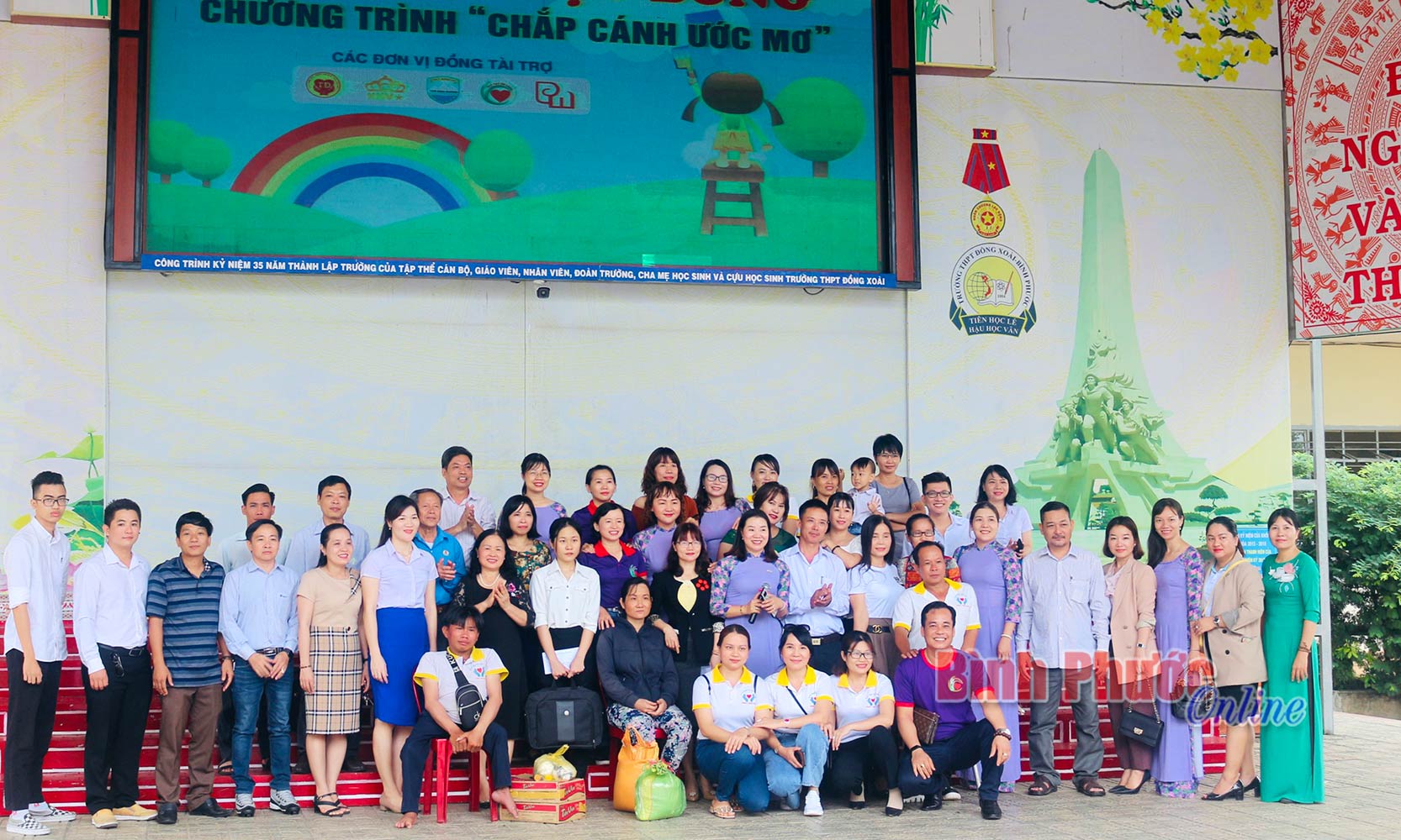 Các đơn vị tài trợ trao bảng biểu trưng số tiền tặng em Đào Thị Hồng Thắm