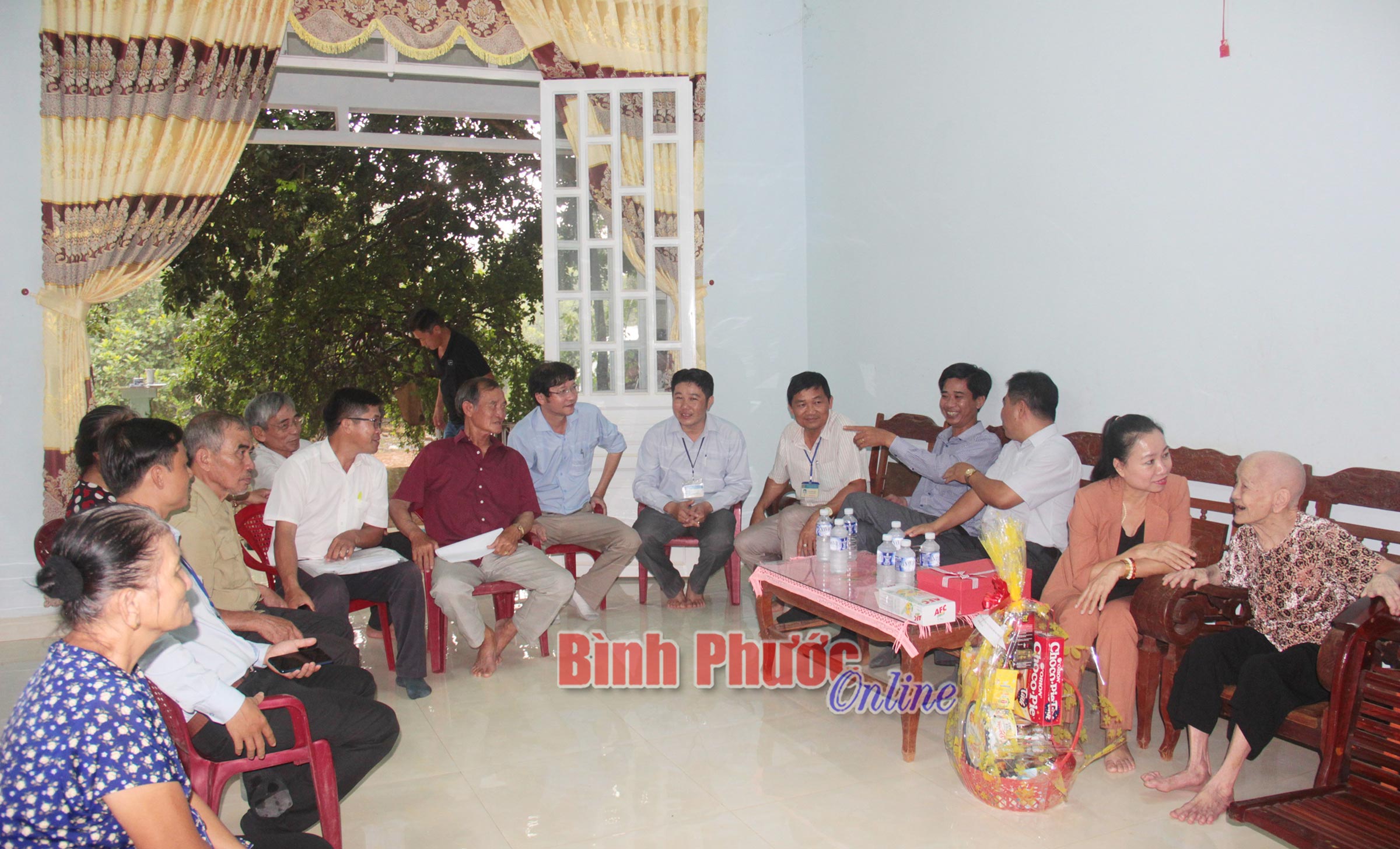 Trưởng ban Dân vận Tỉnh ủy, Chủ tịch Ủy ban MTTQ Việt Nam tỉnh Lê Thị Xuân Trang thay mặt đoàn tặng lụa cụ bà Lê Thị Bầu, thị trấn Tân KhaiHuyện Hớn Quản hiện có 85 cụ ở tuổi 90 và 100. Trong đó, tròn 100 tuổi có 11 cụ. Dịp này, đoàn đã đến thăm, tặng quà, chúc thọ các cụ 100 tuổi trên địa bàn huyện.
