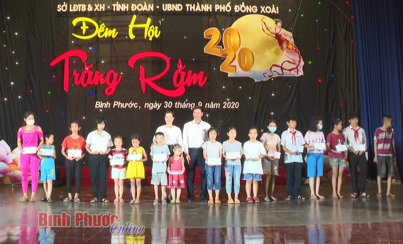 Ban tổ chức “Đêm hội trăng rằm” thành phố Đồng Xoài trao quà cho các em nhỏ gia đình khó khăn và cơ nhỡKhép lại “Đêm hội trăng rằm” năm nay ở thành phố Đồng Xoài, dù vẫn có không ít em nhỏ phải tiếc nuối vì cái tết đầy màu sắc, vui nhộn của mình qua quá nhanh, thế nhưng chính từ những gì mà các em được thụ hưởng thông qua sự quan tâm sâu sắc của các cấp ngành địa phương trong đêm Trung thu này. Chắc chắn sẽ có rất nhiều điều bổ ích đọng lại mãi trong các em để giúp các em phát triển toàn diện hơn, trở thành mần non tương lai tươi sáng của đất nước, của tỉnh nhà.