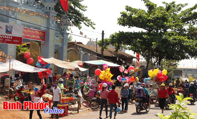 Tại chùa Thanh Trí, xã Bù Nho, huyện Phú Riềng, người dân đi lễ chùa cầu một năm mới bình an, gia đình hạnh phúc