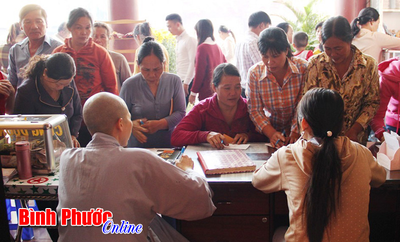 Theo ghi nhận của phóng viên, do tiết trời se lạnh đêm giao thừa nên ngày mồng một tết Bính Thân 2016, tại các ngôi chùa trên địa bàn tỉnh Bình Phước, người dân đi lễ rất đông.