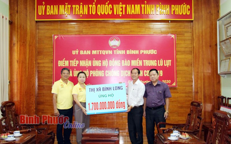 BPO - Chiều nay 13-11, lãnh đạo của Thị ủy, UBND, Ủy ban MTTQ Việt Nam thị xã Bình Long đã trực tiếp trao số tiền 1,7 tỷ đồng cho Ủy ban MTTQ Việt Nam...