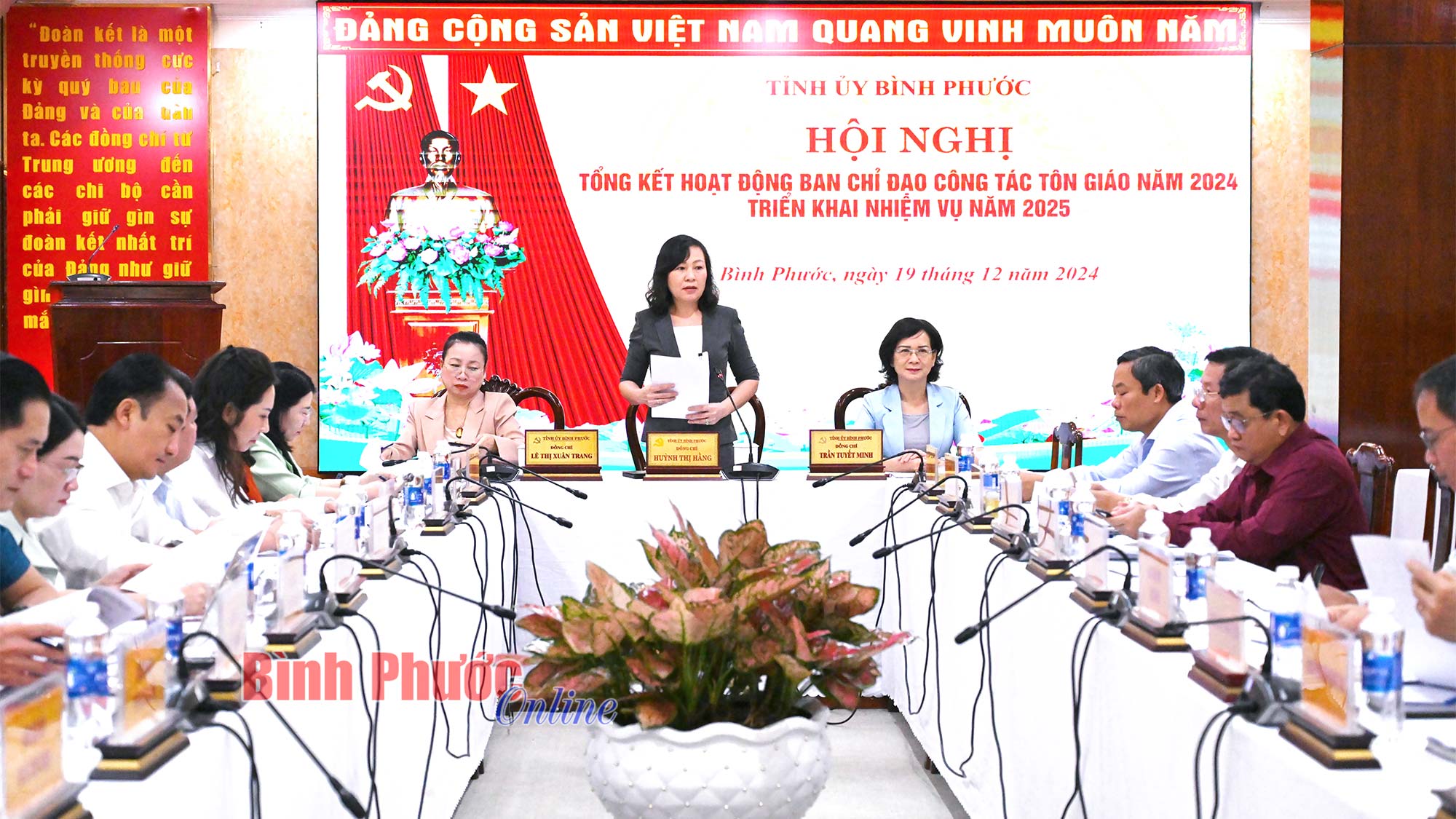 BPO - Sáng 19-12, Phó Bí thư Thường trực Tỉnh ủy, Chủ tịch HĐND tỉnh Huỳnh Thị Hằng chủ trì hội nghị tổng kết hoạt động Ban Chỉ đạo công tác tôn giáo...