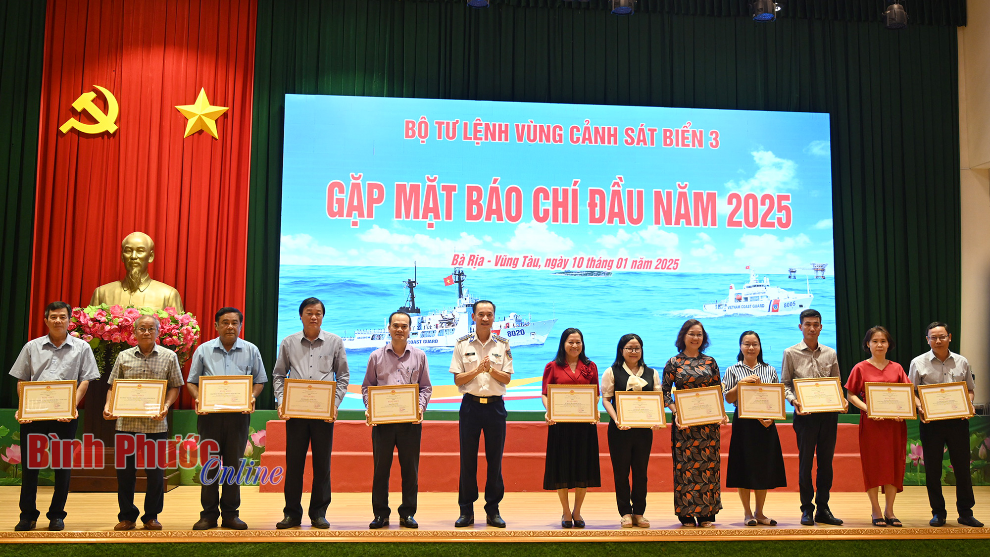BPO - Chiều 10-1, tại thành phố Vũng Tàu, tỉnh Bà Rịa - Vũng Tàu, Bộ Tư lệnh Vùng Cảnh sát biển 3 tổ chức gặp mặt báo chí đầu năm 2025, tổng kết công...