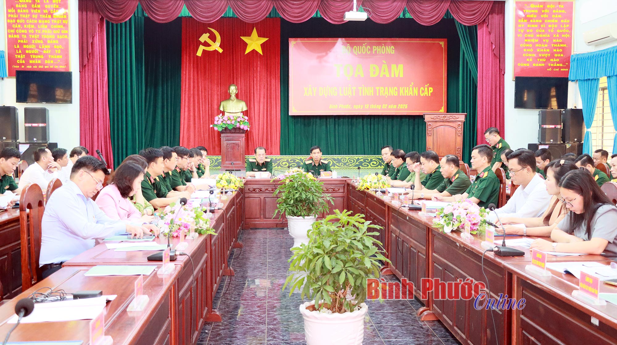 BPO - Chiều 13-2, tại Bộ Chỉ huy Quân sự tỉnh Bình Phước, Bộ Quốc phòng đã tổ chức tọa đàm xây dựng Luật Tình trạng khẩn cấp. Thiếu tướng Đặng Văn Hùn...