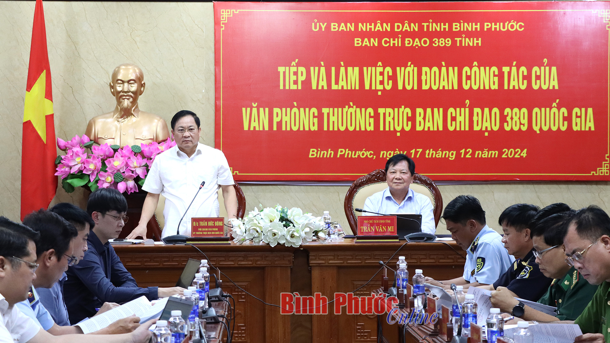 BPO - Chiều 17-12, đoàn công tác do Chánh Văn phòng Thường trực Ban Chỉ đạo 389 quốc gia Trần Đức Đông làm trưởng đoàn, đã có buổi làm việc với Ban Ch...
