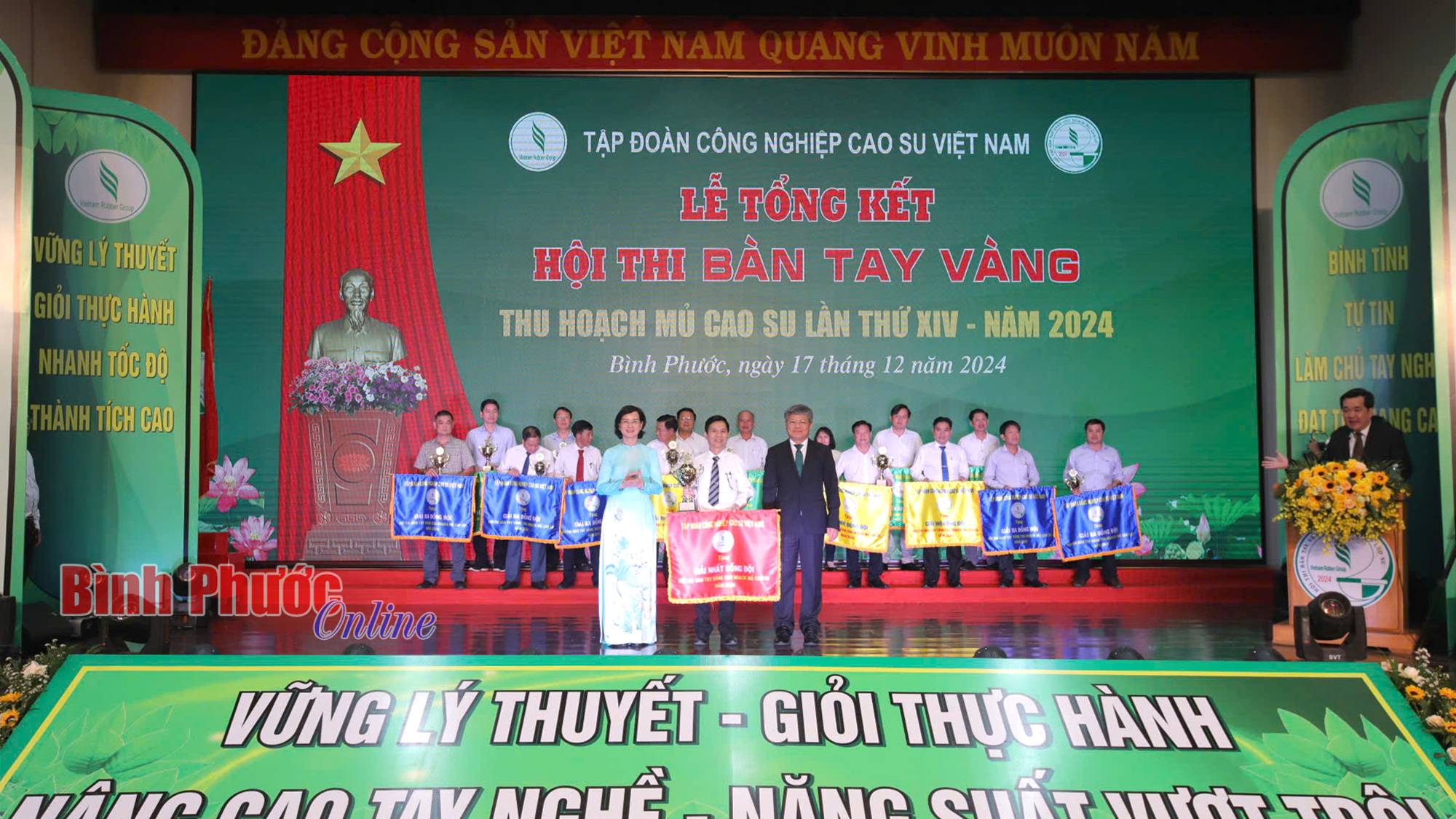 BPO - Sau 4 ngày diễn ra sôi nổi, sáng 17-12, hội thi Bàn tay vàng thu hoạch mủ cao su lần thứ XIV, năm 2024 do Tập đoàn Công nghiệp cao su Việt Nam t...