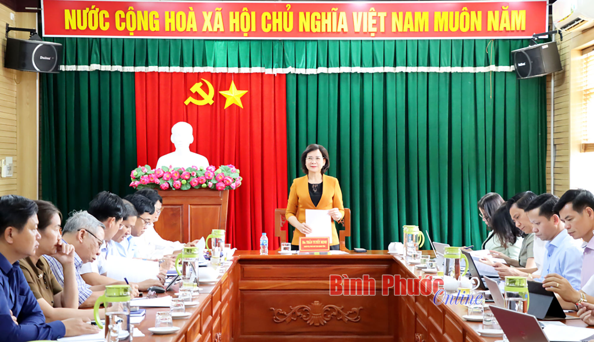 BPO - Chiều 8-4, Ủy viên Ban Thường vụ Tỉnh ủy, Phó Chủ tịch UBND tỉnh Trần Tuyết Minh cùng lãnh đạo các sở, ban, ngành tỉnh làm việc với thị xã Phước...