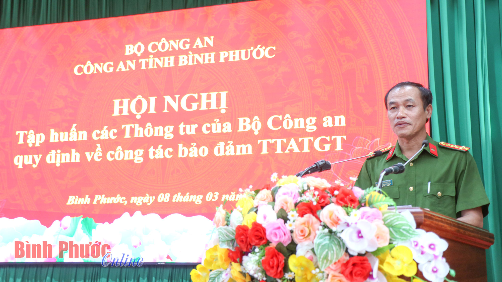 BPO - Ngày 8-3, Đại tá Nguyễn Huy Hải, Phó Giám đốc Công an tỉnh Bình Phước chủ trì hội nghị tập huấn triển khai các thông tư của Bộ Công an quy định...